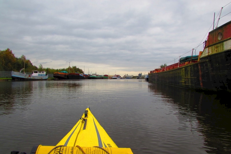 The last miles went quickly, dwaddle as I might to savour the last hour or so on the water. As I came into the outskirts of Goole I saw a group of kayakers on the bank – youngsters getting their introduction to paddling, dressed in wetsuits and buoyancy aids, learning how to handle the paddles and then launching from the grassy bank. I stopped to talk to the organisers for a while, pleased that other paddlers were going to be using the waters, and then pushed onto the Yorkshire Waterways Museum, where the harbour, real sea harbour, taking ships from the tidal Ouse and the coast from beyond the Ocean Lock.