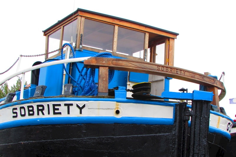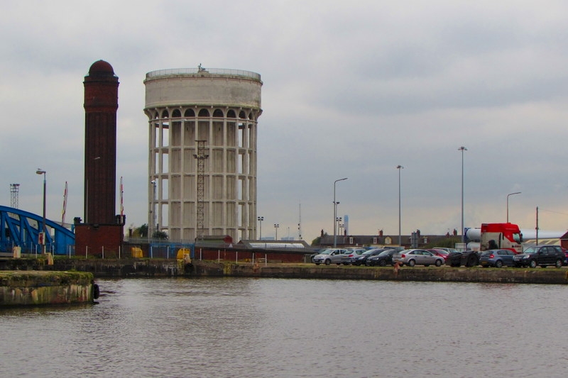 I was just in time to take a boat trip around the port on the museum boat, one of their fleet that included the Sobriety and a Yorkshire cobble, a tug and a string of ‘Tom Puddings’ the tub-like carrying barges that had once been used for transport of heavy cargoes along the A&C. Patch pointed out the bridges and heritage of the waters and town. The Lowther Hotel built at the time the canal was established, the two towers called for obvious reasons the Salt And Pepper Pots. It was strange being able to relax as a passenger whilst Karl steered, and being on the water without having to paddle or work out where I was or calculate time and distances. Instead I looked in on the cranes and piles of logs and the hoppers and yards and forklifts and diggers of a busy harbour. And noted the variety of genuine barges as opposed to narrowboats, and ships and tankers. It really felt that I had come coast to coast, from the busy waters of the Mersey, across the Pennines, to this working port far to the east.